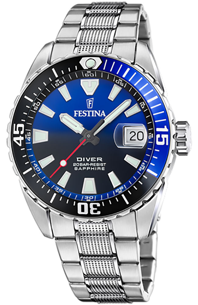 Ανδρικό ρολόι Festina από ανοξείδωτο ατσάλι με δίχρωμο καντράν και μπρασελέ.