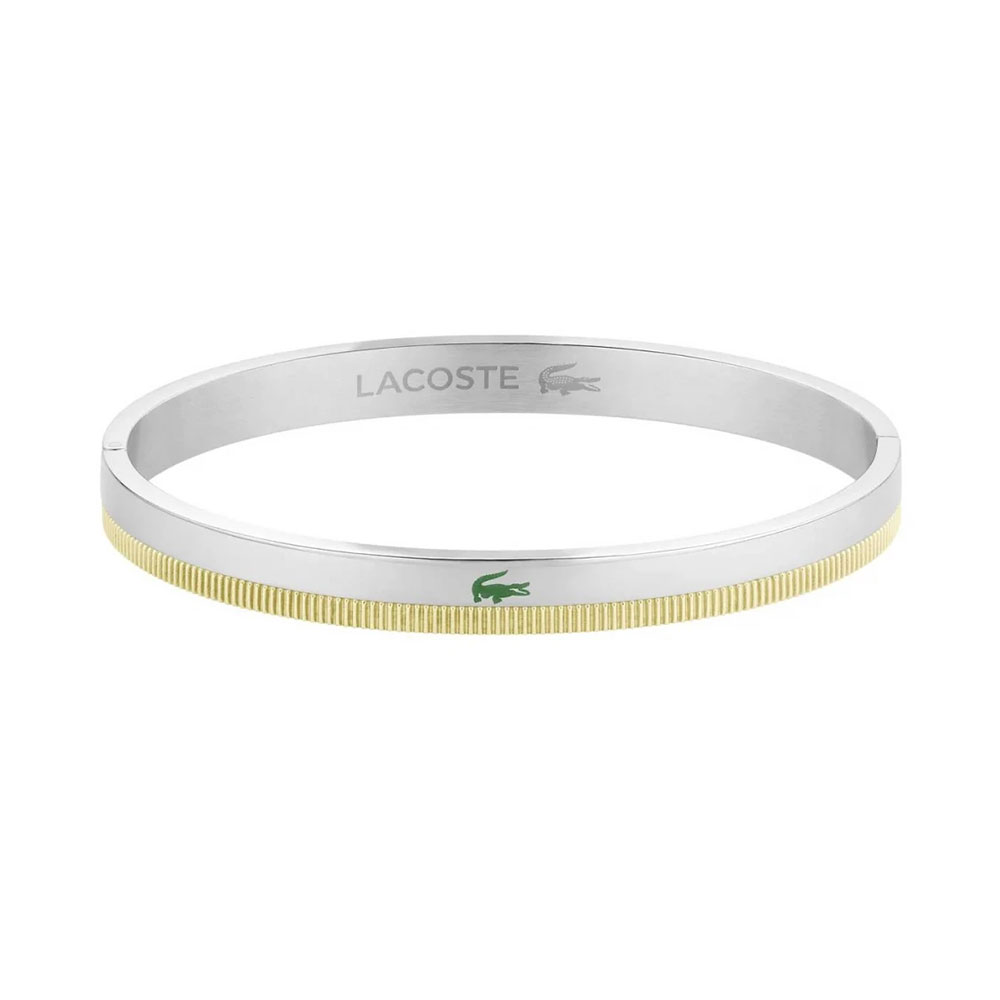 Γυναικείο βραχιόλι χειροπέδα από δίχρωμο ανοξείδωτο ατσάλι, με το ομώνυμο λογότυπο του οίκου.Αποστέλλεται σε συσκευασία δώρου, με πιστοποιητικό γνησιότητας από την επίσημη αντιπροσωπεία της Lacoste.