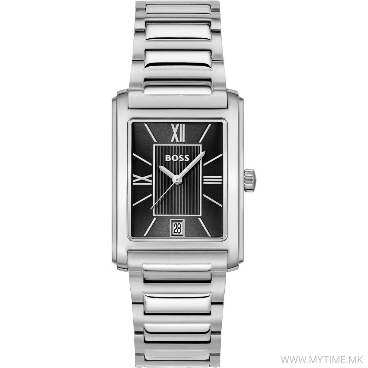 Ανδρικό ρολόι HUGO BOSS με μπρασελέ από ανοξείδωτο ατσάλι και μαύρο καντράν. Διαθέτει μηχανισμό Quartz και κρύσταλλο ειδικής σκλήρυνσης. Έχει διάμετρο 29,8×38,8 mm και αντοχή στο νερό 5 ATM.