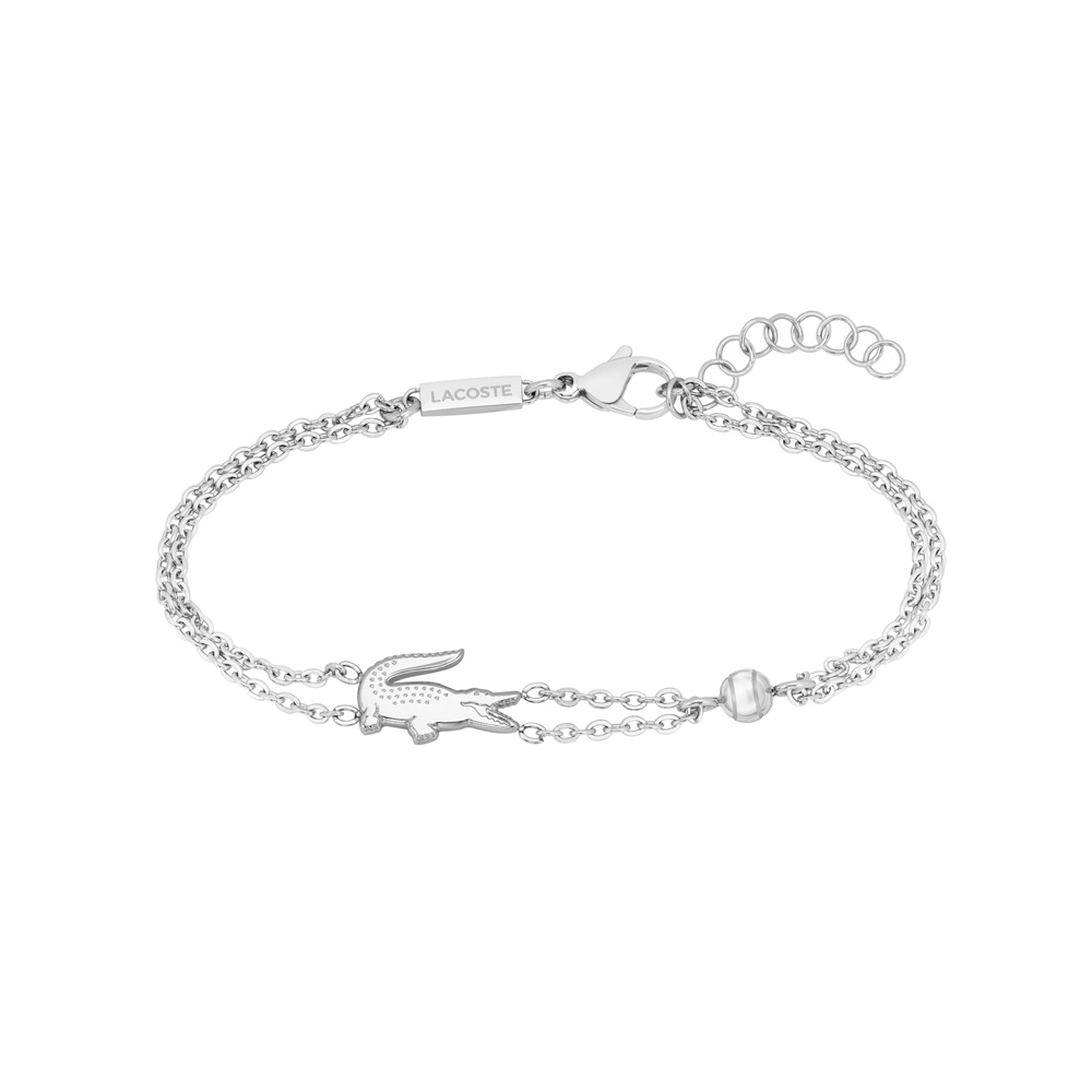 Γυναικείο βραχιόλι από ανοξείδωτο ατσάλι, με το ομώνυμο λογότυπο του οίκου Lacoste, κατασκευασμένο από ανοξείδωτο ατσάλι.