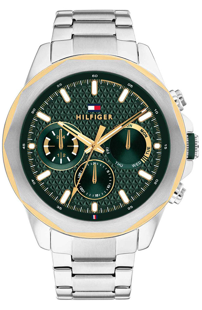 Ανδρικό ρολόι Tommy Hilfiger από ανοξείδωτο ατσάλι με πράσινο καντράν και μπρασελέ.