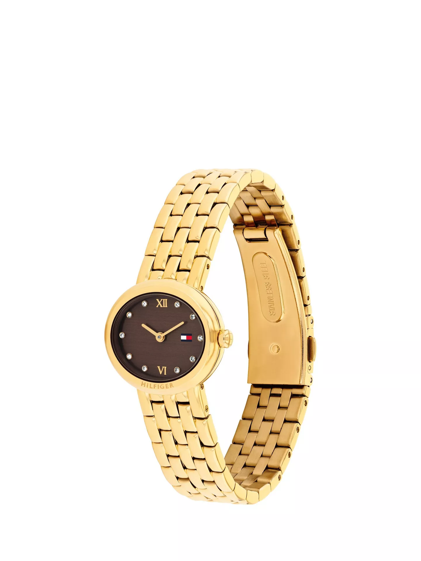 Tommy Hilfiger Women’s Oval Crystal Bracelet Strap Watch, Gold